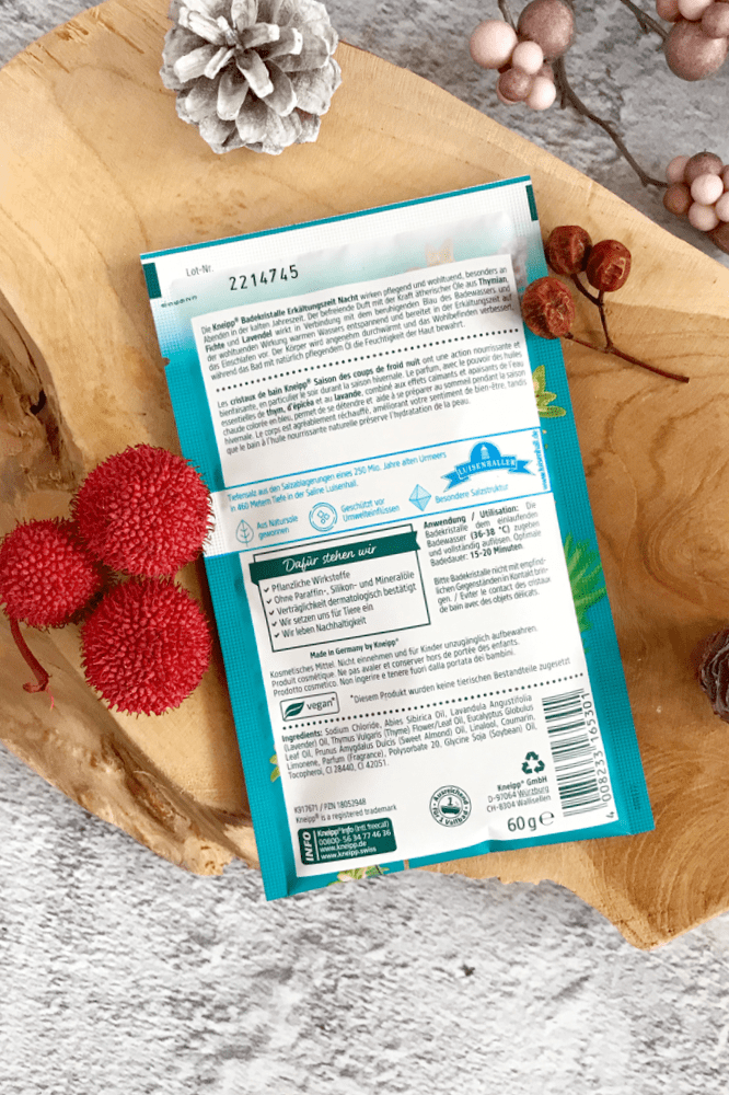 Auch wenn ich viel lieber unter die Dusche hüpfe, habe ich mir mal ein Sachet von den Kneipp Badekristalle Erkältungszeit Nacht geholt, um zu verhindern, das mein kleines verschnupft sein zu einer größeren Erkältung mutiert.